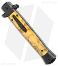 11″ Stiletto OTF Automatic Knife Yellow Acrylic (4.8″ Satin) Dagger W/o Clip