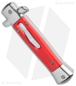 9″ Italian Stiletto Dagger OTF Automatic Knife Red/Silver (4.9″ Satin)