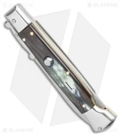 AGA Campolin 9″ Sicilian Ring Pull Automatic Knife Abalone (5.5″ Satin Bayo)