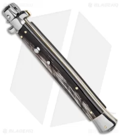SKM 4.5″ Italian Mini Stiletto Automatic Knife Dark Horn (2″ Satin Bayonet)