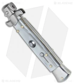 SKM 9″ Italian Stiletto Automatic Knife White Pearlex (3.8″ Satin Bayonet)