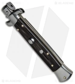 SKM AB 9″ Italian Stiletto Automatic Knife Dark Horn (3.8″ Satin Dagger)