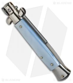 SKM AB 9″ Italian Stiletto Automatic Knife Light Blue Pearlex (4″ Satin Bayo)