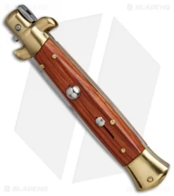 SKM AB 9″ Italian Stiletto Automatic Knife Brass/Rosewood (4″ Satin Flat)