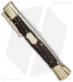 AGA Campolin 13″ Bat Swinguard Automatic Knife Brass/Stag Horn (5.75″ Dagger)