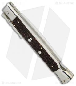 AGA Campolin 13″ Bat Swinguard Automatic Knife Stag Horn (5.75″ Satin Bayo)