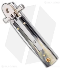AGA 6″ Lever Lock Automatic Italian Knife Horn W/Cross Bolsters (2.5″ Satin)