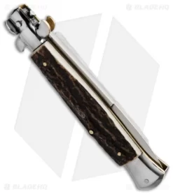 A.G.A. Campolin 12″ Sicilian Picklock Bayo Automatic Knife Stag (5.5″ Satin)