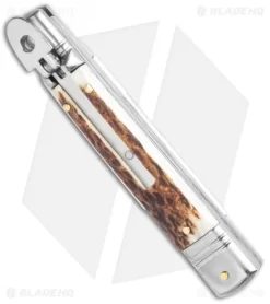 AKC 7.75″ Slimline Lever Lock Clip Point Automatic Knife Stag Horn (3.3″ Satin)