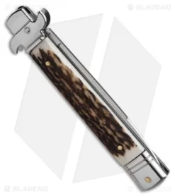 AKC Leverletto 9″ Lever Lock Automatic Italian Knife Stag Horn (4″ Satin Flat)