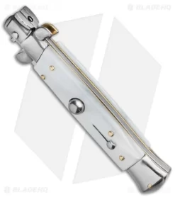 Frank B. 7.75″ Italian Stiletto Automatic Knife White Pearlex (3.6″ Satin)
