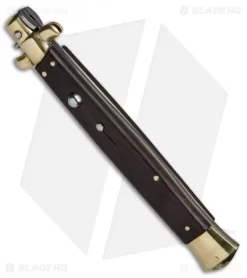 SKM 13″ Italian Stiletto Automatic Knife Hardwood/Brass (5.7″ Satin Flat)