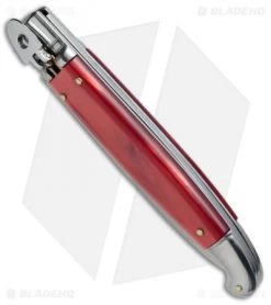SKM 9.5″ Fancy Lever Lock Automatic Knife Red Acrylic (4″ Satin Bayo)