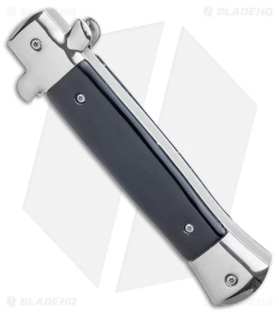 Pick up a unique and collectible design with the 9″ Italian Stiletto OTF (out the front) automatic knife. This OTF model is built with an acrylic black handle and a polish finished blade. It features classic Italian made craftsmanship and a dependable double-action OTF mechanism. Item includes a nylon sheath for secure belt carry.