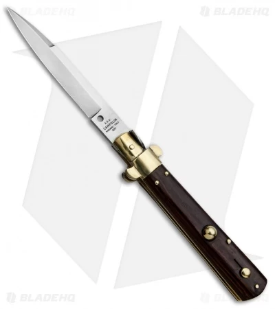 This 10″ Italian Stiletto from A.G.A. Campolin comes in a Frosolone style with a cocobolo handle and a bayonet blade. A.G.A. Campolin offers some of the finest traditional Italian Stiletto’s on the market, with a variety of collectible styles to choose from. This Frosolone model has a cocobolo handle with brass bolsters and buttons. Brass pins and liners add a classic touch to the design. The blade comes in a bayonet style with a plain edge and a satin finish. Add a piece of Italian history to your collection with the A.G.A. Campolin 10″ Frosolone Stiletto.
