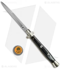 This 11″ Italian Stiletto from A.G.A. Campolin comes in the classic style with a dark horn handle and a bayonet blade. A.G.A. Campolin offers some of the finest traditional Italian Stiletto’s on the market, with a variety of collectible styles to choose from. This 11″ model has a dark horn handle with nickel silver bolsters and buttons. Brass pins and liners add a classic touch to the design. The blade comes in a bayonet style with a plain edge and a polished finish. Add a piece of Italian history to your collection with the A.G.A. Campolin 11″ Picklock Stiletto.
