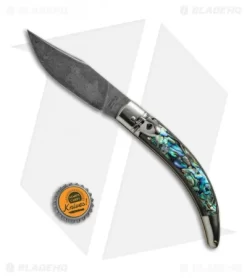 This Italian Stiletto from A.G.A. Campolin comes in the Diana Leverlock style with an abalone handle and a Damascus steel blade. A.G.A. Campolin offers some of the finest traditional Italian Stiletto’s on the market, with a variety of collectible styles to choose from. Brass pins and liners add a classic touch to the design. Add a piece of Italian history to your collection with the A.G.A. Campolin Diana Leverlock Stiletto.