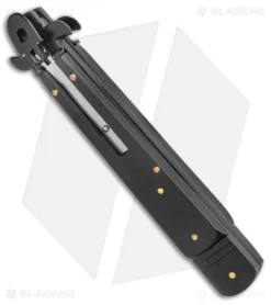 The 007 Concord is an impressive out-the-front knife from AKC Knives. This Italian made automatic is just like the regular Concord, except it has a thicker handle for increased durability and strength. It has a double-action firing mechanism with a front-loaded button that slides forward to activate the OTF blade. Simply pull the lever back to retract the blade back into the handle. This 007 Concord knife features a spear point blade with a flat grind and a satin finish. The aluminum handle has a black finish with black acrylic inserts.