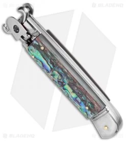 This 8″ Italian Stiletto from AKC comes in the Lever Lock Shot Puller style with an abalone handle and a flat grind blade. AKC specializes in collectible Italian stilettos made with traditional knife-making techniques. This 8″ Lever Lock model has a cocobolo handle with a sturdy stainless steel liner. Brass pins and nickel silver liners add a classic finishing touch to the design. The blade comes in a dagger style with a plain edge and a polished finish. Add classic Italian style to your collection with the AKC 8″ Lever Lock stiletto.