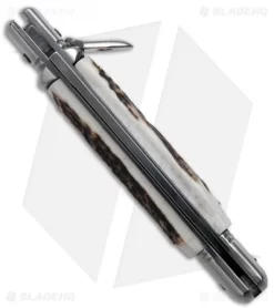 This Italian Stiletto from AKC comes in the Speed Hunter style with a stag horn handle and a flat grind blade. AKC specializes in collectible Italian stilettos made with traditional knife-making techniques. This Speed Hunter model has a stag horn handle with a sturdy brass liner. Silver pins and buttons add a classic finishing touch to the design. The blade comes in a drop point style with a plain edge and a polished finish. Add classic Italian style to your collection with the AKC Speed Hunter stiletto.