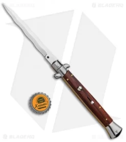 This 11″ Italian Stiletto from Frank B. features classic stiletto style with a cocobolo handle and a polished kris style blade. Frank B creates some of the finest authentic Italian stilettos available on the market today. This 11″ model has a cocobolo handle with nickel silver bolsters. Brass pins and liners add a classic touch to the design. Add the premier Italian knife-maker to your collection today with an authentic Italian stiletto from Frank B.