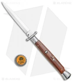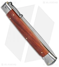 This 11″ Italian Stiletto from Frank B. features classic stiletto style with a cocobolo handle and a satin finished dagger blade. Frank B creates some of the finest authentic Italian stilettos available on the market today. This 11″ model has a cocobolo handle with silver bolsters. Brass pins and liners add a classic touch to the design. The blade comes in a dagger style with a plain edge and a satin finish. Add the premier Italian knife-maker to your collection today with an authentic Italian stiletto from Frank B.