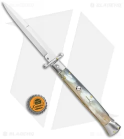 Italian Stilettos are handmade using traditional knife-making techniques. As a result they will have a more rustic fit and finish than most production knives. These traditional Italian knives are intended more for collection and display, rather than hard EDC use.