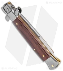 This 9″ Italian Stiletto from Frank B. features classic stiletto style with a palisander wood handle and a satin finished bayonet blade. Frank B creates some of the finest authentic Italian stilettos available on the market today. Brass pins and liners add a classic touch to the design. Add the premier Italian knife-maker to your collection today with an authentic Italian stiletto from Frank B.