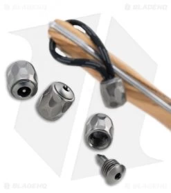 The LionSteel TiP is a small titanium pearl bead with a removable threaded cap that is used to lock the bead onto the end of a paracord lanyard. This bead comes in a blue finish, and is designed for use with a 5/32 lanyard.