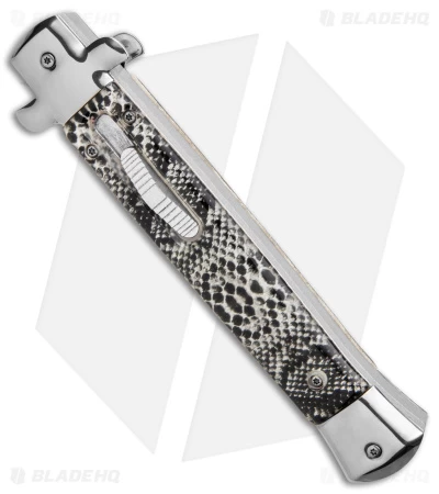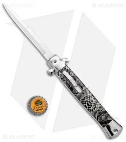 The Mago Italian Stiletto OTF knife has automatic double-action that shoots the blade in or out with one push. It has that old-time Italian feel, while boasting modern out-the-front automatic action. If you crave the old-fashioned stiletto look, but are looking for something with a more modern touch, this is the knife for you!
