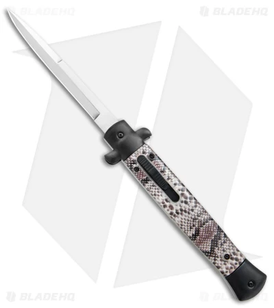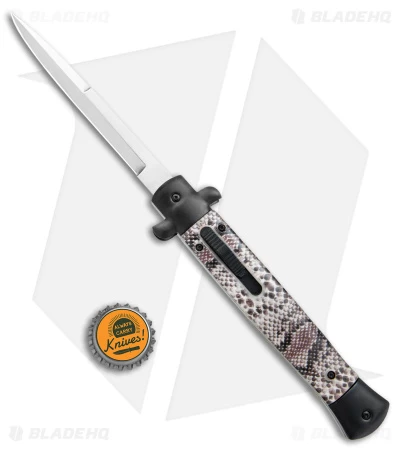 The Mago Italian Stiletto OTF knife has automatic double-action that shoots the blade in or out with one push. It has that old-time Italian feel, while boasting modern out-the-front automatic action. If you crave the old-fashioned stiletto look, but are looking for something with a more modern touch, this is the knife for you!