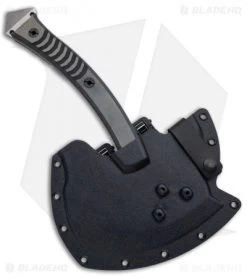 The Maserin Combat Tomahawk offers a heavy duty combat axe for your most extreme tactical needs. This model is built with gray G-10 handle and a full tang D2 steel blade with a rounded tail spike. It features a bearded head and an extended striker tang. Item includes a MOLLE compatible sheath.