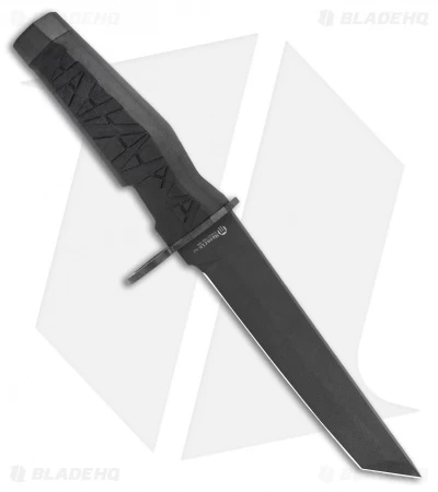 Add an Italian made bayonet fixed blade to your tactical gear with the Maserin Myrmillo. This Myrmillo model features a black rubberized handle and a black finished tanto blade. It’s outfitted with a stainless steel bayonet mount that is both salt and wear resistant. This perfectly balanced fixed blade will serve you well in all of your tactical endeavors.
