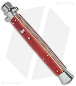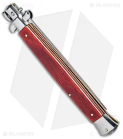 This 13″ Italian Stiletto from SKM Italy offers classic stiletto style with a red pakkawood handle and a satin finished blade. SKM makes a variety of Italian stilettos featuring traditional designs at an affordable price. This 13″ model has a wood handle with stainless steel bolsters. Brass pins and liners add a classic finishing touch to the piece. The blade has a flat grind with a plain edge and a satin finish. Experience the affordable Italian quality of these authentic stilettos from SKM Italy.
