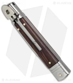 This 7.75″ Italian Stiletto from SKM Italy comes in the lever lock style with a cocobolo handle and a satin finished blade. SKM makes a variety of Italian stilettos featuring traditional designs at an affordable price. This 7.75″ model has a cocobolo handle with stainless steel bolsters. Brass pins add a classic finishing touch to the piece. The blade has a flat grind with a plain edge and a satin finish. Experience the affordable Italian quality of these authentic stilettos from SKM Italy.