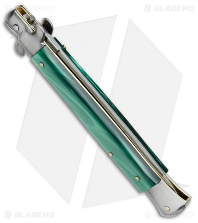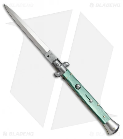 This 11″ Italian Stiletto from SKM Italy offers classic stiletto style with a green pearlex handle and a dagger blade. SKM worked with famed knife-maker Armando Beltrame to bring you traditional stiletto designs at an affordable price. This 11″ model has a pearlex handle with stainless steel bolsters. Brass pins and liners add a classic finishing touch to the piece. The dagger blade has a plain edge and a satin finish. Experience the affordable Italian quality of these authentic stilettos from SKM Italy.