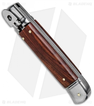 This 8″ Italian Stiletto from SKM comes in the Lever Lock style with a cocobolo wood handle, stainless bolsters, and a flat grind blade. SKM specializes in collectible Italian stilettos made with traditional knife-making techniques. This 8″ Lever Lock model has a cocobolo handle with a sturdy stainless steel blade. Brass pins add a classic finishing touch to the design. Add classic Italian style to your collection with the SKM 8″ Lever Lock stiletto.
